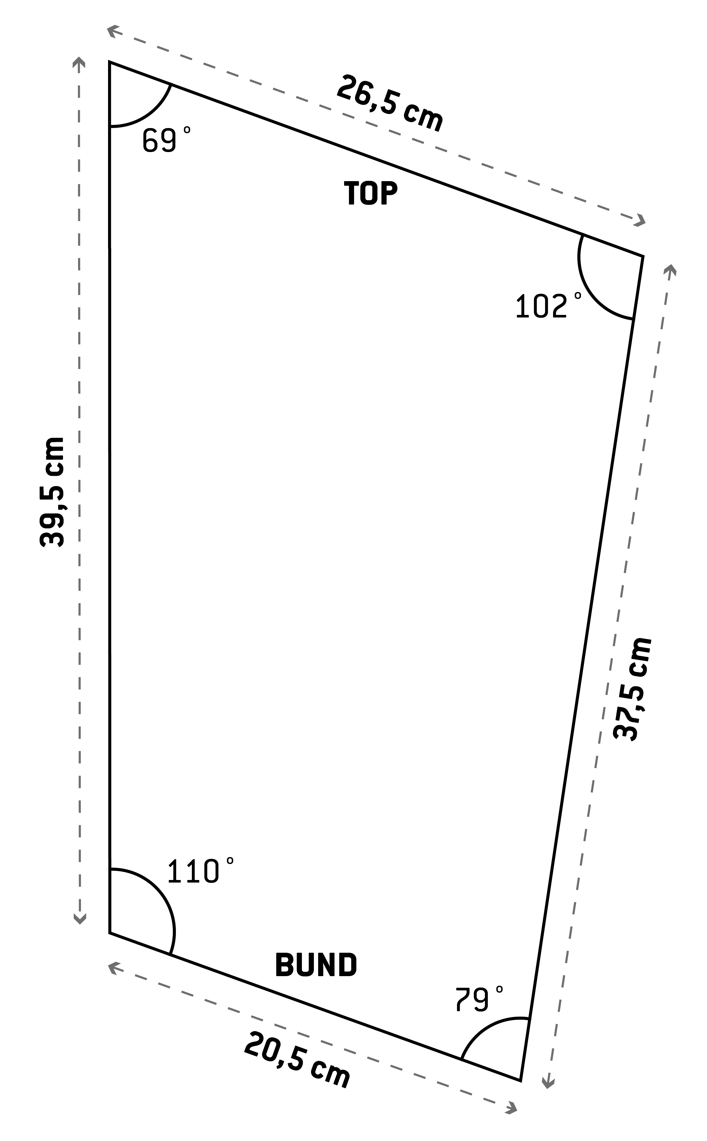 To sider: Se tegning for mål og vinkler