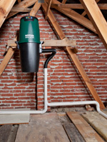 Støvsugeren placeres typisk på loftet, i kælderen eller i et udhus.Væsentligt er at det er langt nok væk til at man ikke kan høre den, men den skal selvfølgelig være tilgængelig, når den skal tømmes. Selv om du placerer maskinen på eksempelvis loftet, er tømning noget, du kan klare forholdsvis hurtigt. Maskinen komprimerer nemlig det, der suges op så kraftigt, at den kun skal tømmes et par gange om året. Selve rørene kan føres fra eksempelvis loftet og ned via husets indbyggede skabe – eller hvor det er hensigtsmæssigt.