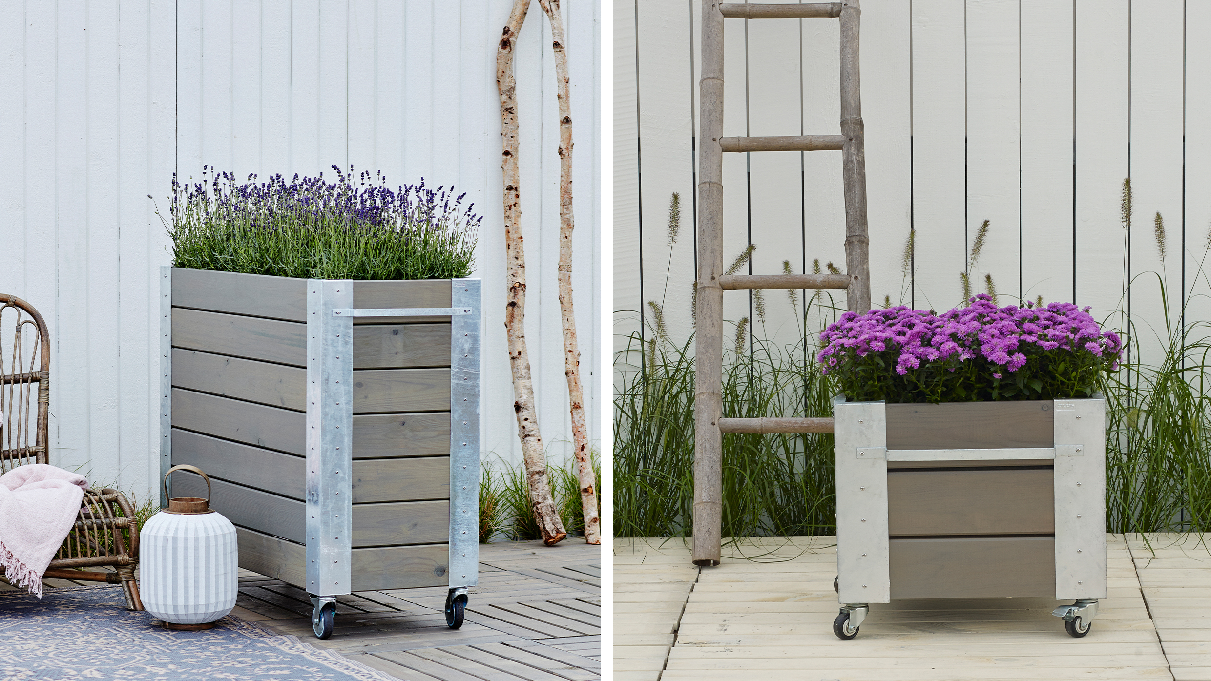 Gør altanen, terrassen eller indgangen levende med smukke plante- og blomsterkasser. Du kan vælge en højde, der giver en behagelig arbejdsstilling, og kasserne fungerer perfekt som afskærmning eller rumdeler. De praktiske hjul gør det nemt at flytte dem, præcis hvor du ønsker.