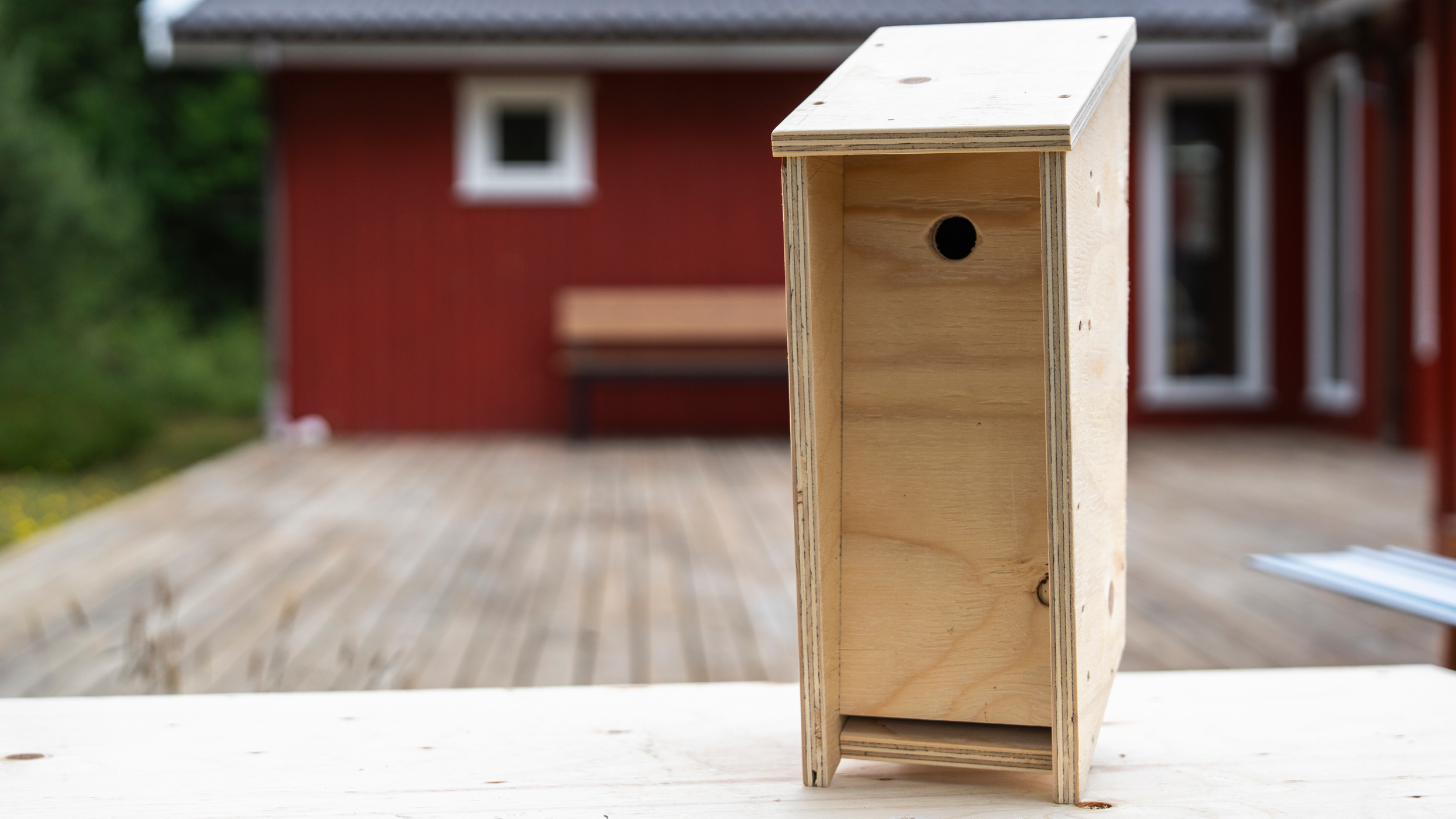 Hvis du ønsker at beskytte redekassen yderligere mod vejr og vind, kan du påføre udendørs træbeskyttelse på kassens ydersider. Vælg en træbeskyttelse uden skadelige kemikalier, så fuglene ikke bliver påvirket. Undgå at male indersiden af kassen, da det kan afgive dampe.