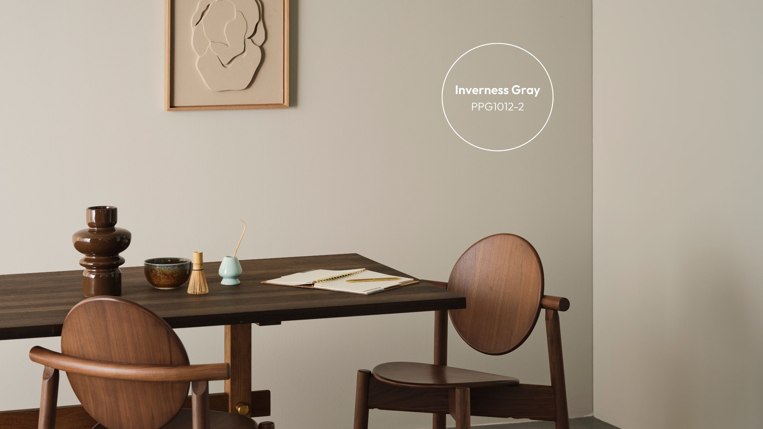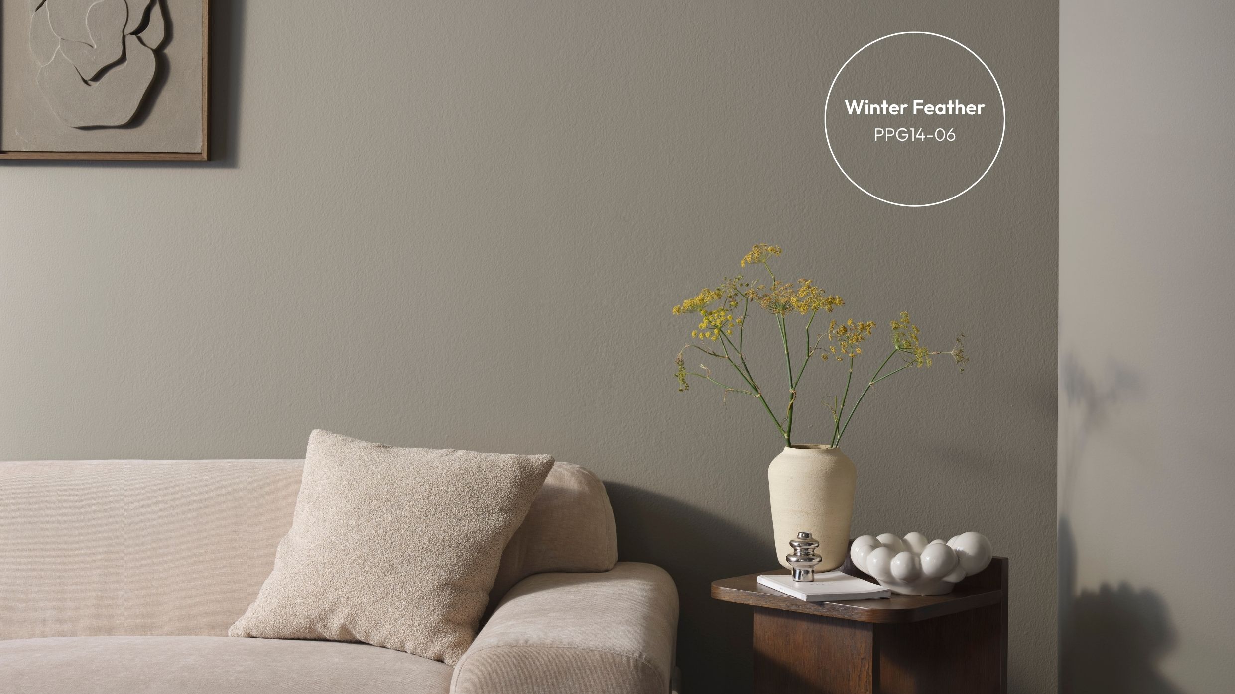 Stuen: Nuancer som Winter Feather eller Inverness Gray skaber en afslappet og harmonisk base.