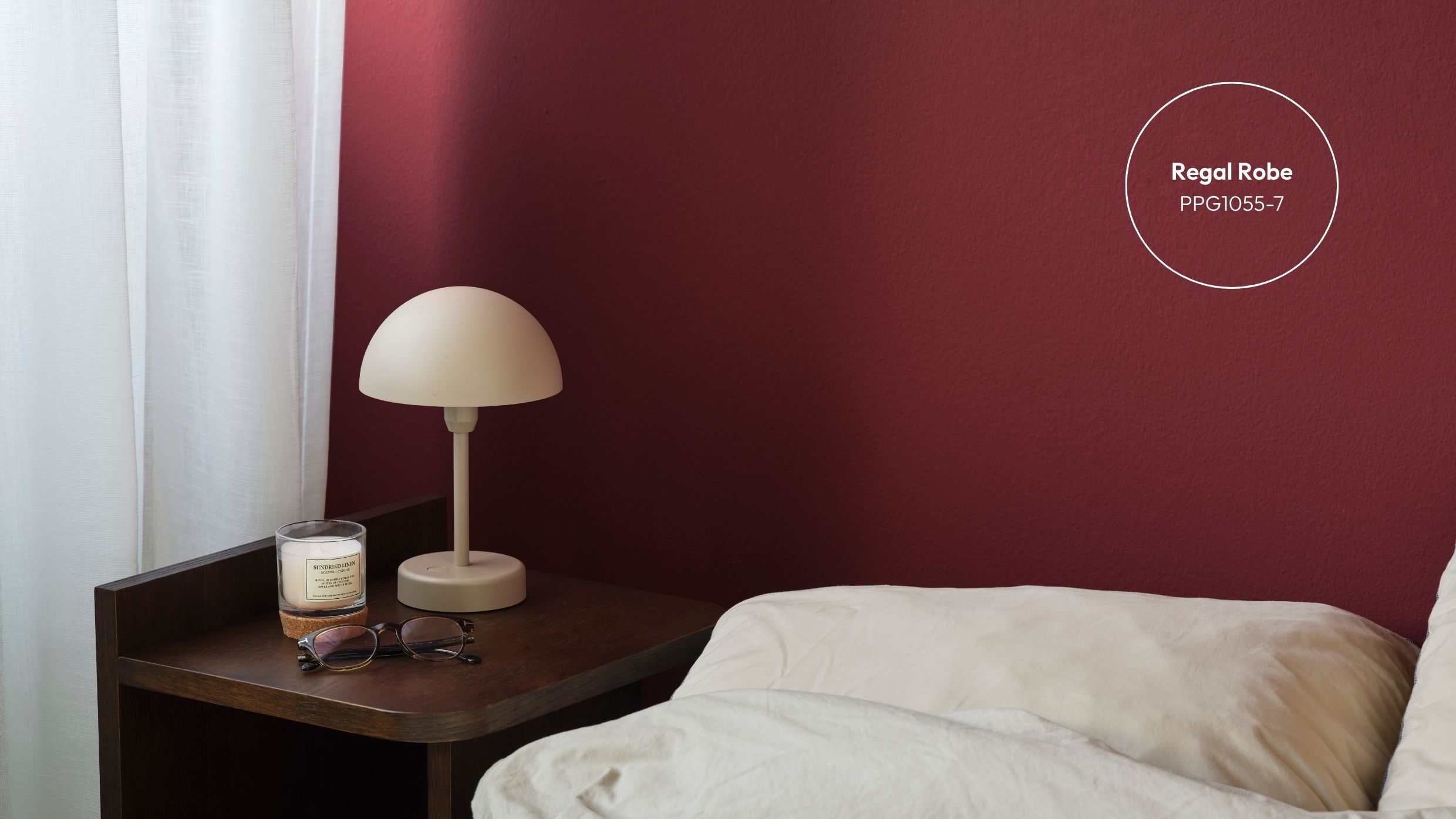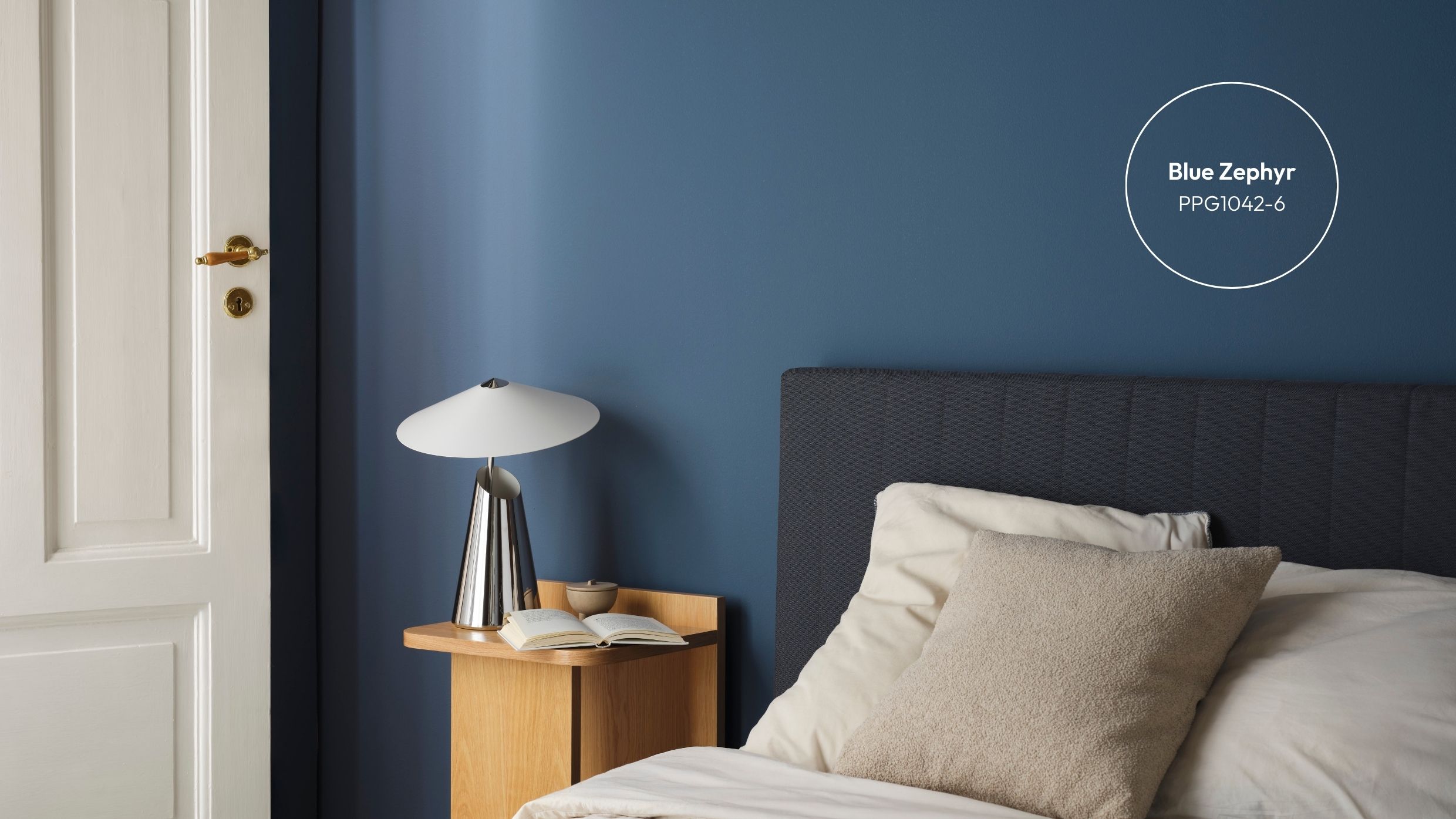 Mørkere farver bliver luksuriøse uden at virke tunge. Regal Robe, en dyb blommefarve, skaber dramatik og intimitet uden at gøre rummet mørkt. Blue Zephyr, en stemningsfuld blågrå, giver dybde uden at virke dyster.