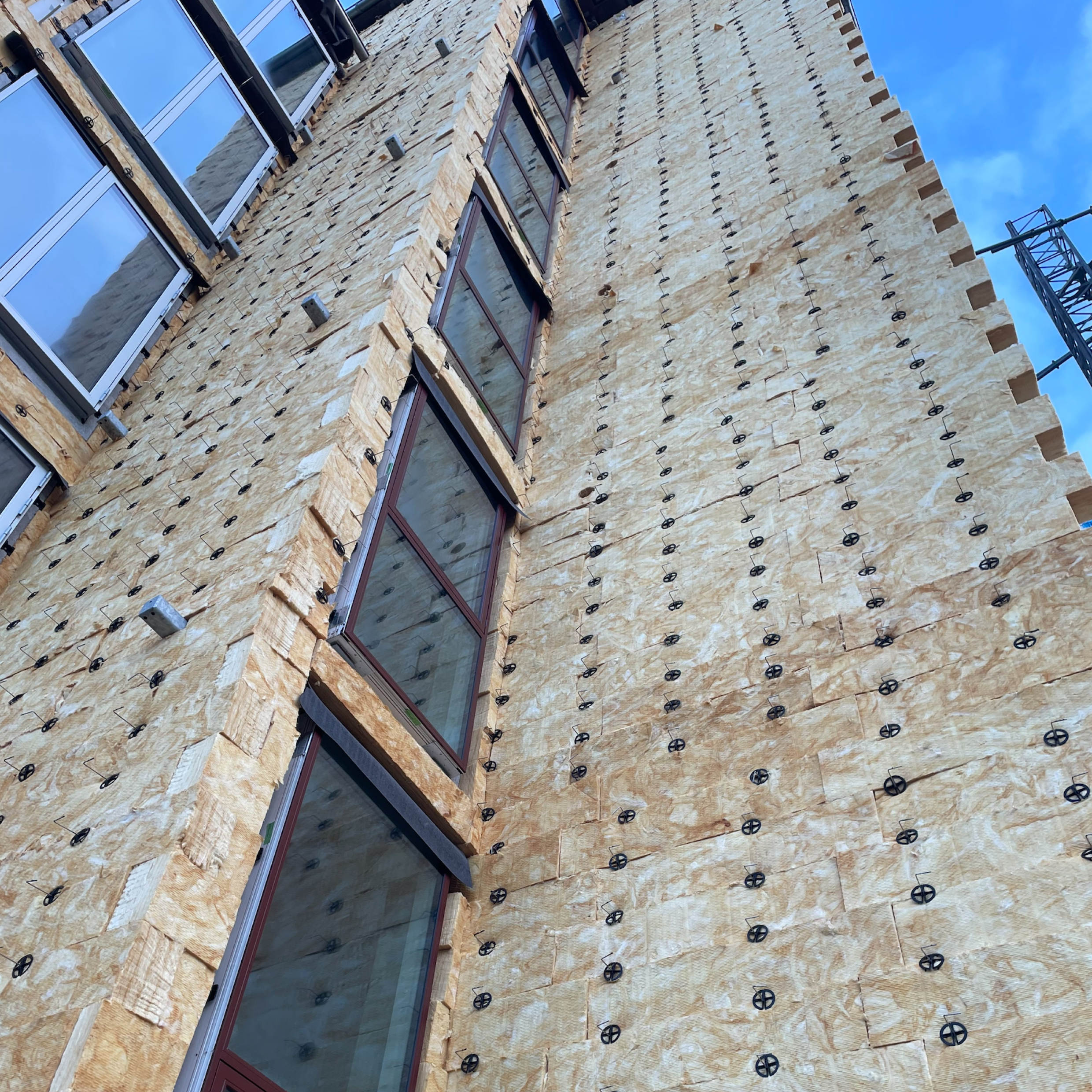 ”Faktisk kan murfilt stå frit eksponeret i op til 6 måneder, hvis det er monteret efter vores anvisninger med låseskiver til at holde isoleringen på plads,” siger Henrik Olsen. Mange håndværkere er ifølge Henrik Olsen også glade for, at de, med et hurtigt telefonopkald til Teknisk Rådgivning hos Isover eller en sælger, kan få råd og vejledning omkring monteringen af murfilten.