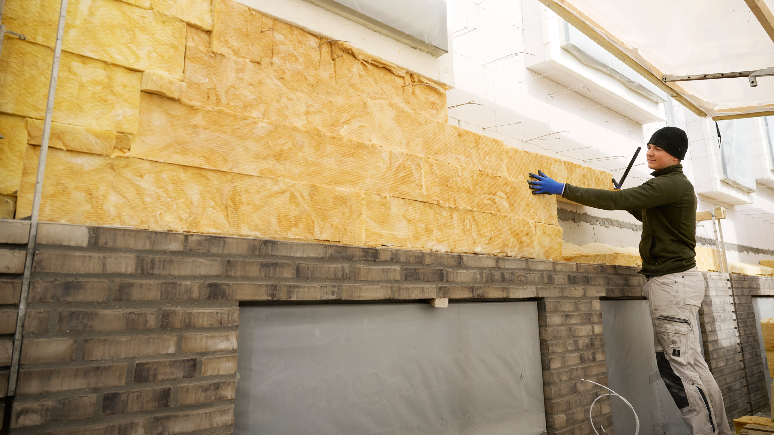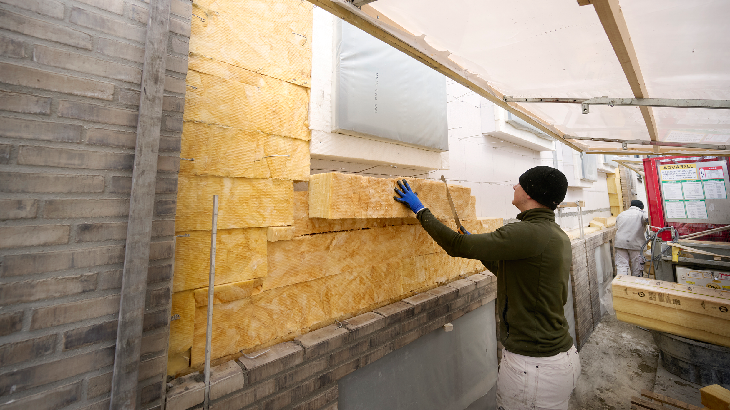 Når først isoleringsmaterialet er blevet monteret på skalmuren eller i hulmuren, tager Isover Murfilt ikke skade af at blive eksponeret for klassisk dansk vind og (u)vejr.