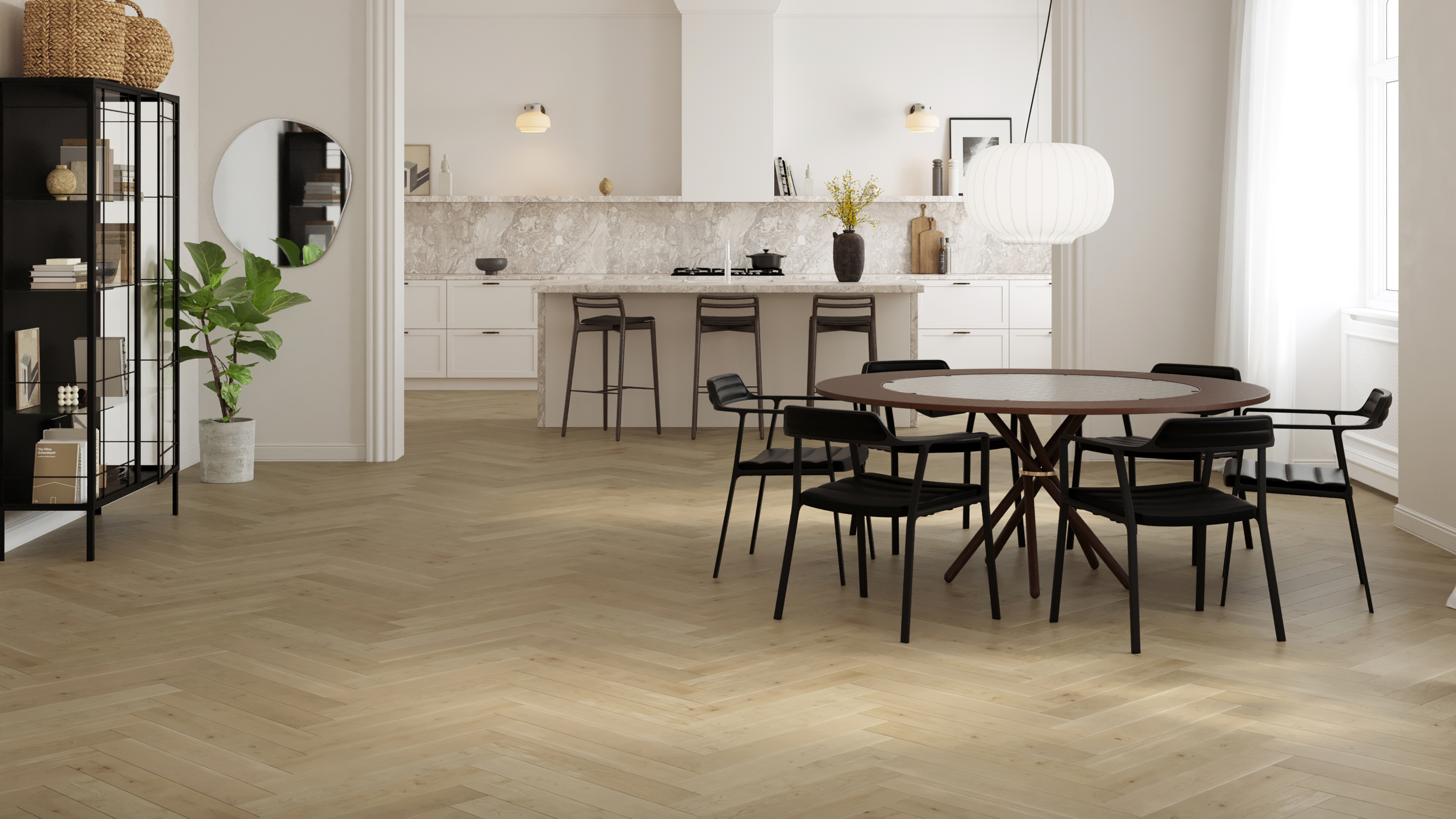 Resultatet? Et elegant og roligt udtryk i hele hjemmet – perfekt til moderne hjem med åbne planløsninger, hvor køkken, stue og gang flyder sammen.