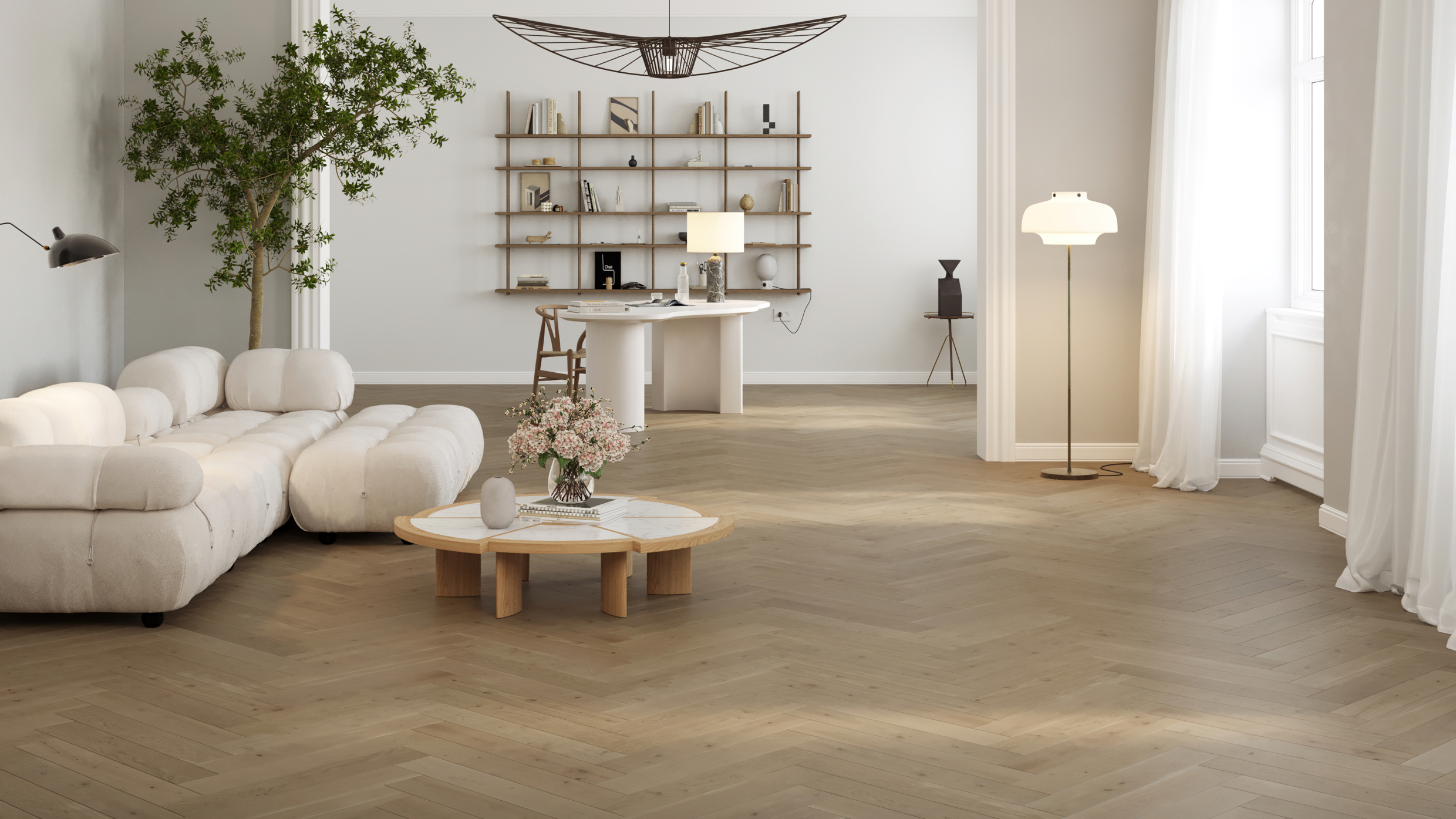 Du slipper for overgangslister og synlige brud ved dørene. Det giver et mere roligt og sammenhængende udtryk i hele hjemmet – perfekt til moderne, åbne planløsninger.